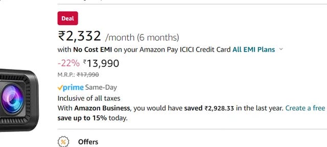 Amazon’s changing UI is another manifestation of this larger trend. The first price indicator a buyer sees on the product page is not the product’s actual cost but its monthly EMI. This is meant to psychologically induce buyers to spend money they perhaps don’t have because a monthly EMI feels about 6 times lighter than paying for the product upfront.
